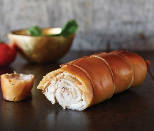 • Roti de Cochinillo, de Cárnicas Tabladillo. Sin hueso, tierno por dentro y muy crujiente por fuera, es el producto con el que los grandes chefs no se la juegan a la hora de deleitar a sus comensales. Elaborado con cochinillo y sal, basa con sacarlo del frigorífico 30 minutos antes de hornear con un poco de agua en la bandeja. En 45 ó 50 minutos está perfecto para degustar.