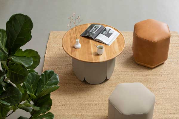 Por su parte, Atay es una familia de mesas auxiliares y pufs que permiten infinitas combinaciones entre sí y aportan sofisticación, confort y color a los espacios de espera y reunión. Su forma hexagonal confiere a la colección un aspecto singular y logra un juego de luces y sombras en cada una de sus seis caras: