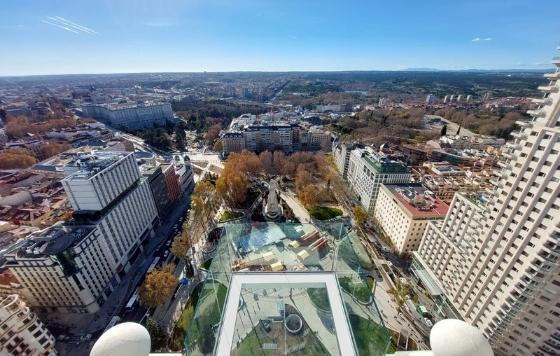 La terraza 360 del hotel Riu de Madrid ha añadido un atractivo más a sus espectaculares vistas de la capital: un mirador transparente sobre la recién inaugurada Plaza de España. El hotel también ha inaugurado Edén, un bar de tapas, ubicado en la planta 26 y con vistas espectaculares.