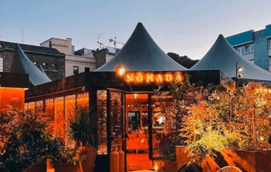 Nomada es un restaurante único en la capital. Definido por la propiedad como «un paraíso terrenal para cenar, beber y sanar», se ha concebido como una auténtica jaima rodeada de vegetación, cascadas de agua y una terraza con barra, sishas y cómodos sofás.