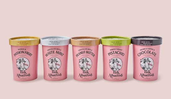 Fundada en 2018 por Pepe Biaggio y Luke Saldanha, Pink Albatross ofrece helados elaborados con ingredientes reconocibles, naturales y plant-based.