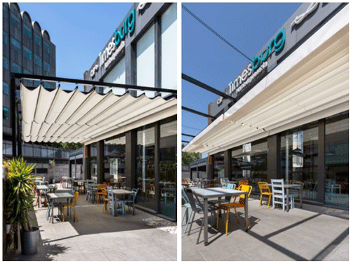 Profesionalhoreca, toldos Aneas de Saxun en la hamburguesería Timesburg de Madrid