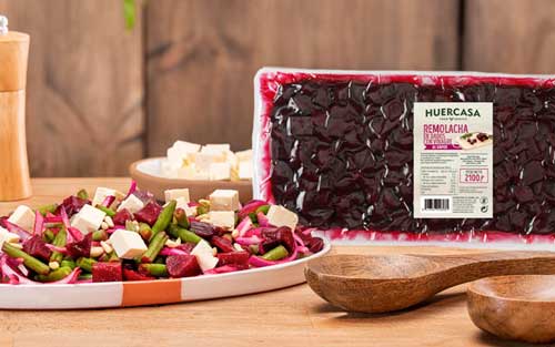 La gama Huercasa Food Service, que se presentó en HIP 2022, ofrece distintos formatos y presentaciones de maíz dulce, remolacha roja, patata, boniato, zanahoria y legumbres. Todos los productos están cocinados al vapor y envasados al vacío, manteniendo sus propiedades nutricionales y un inmejorable aspecto.