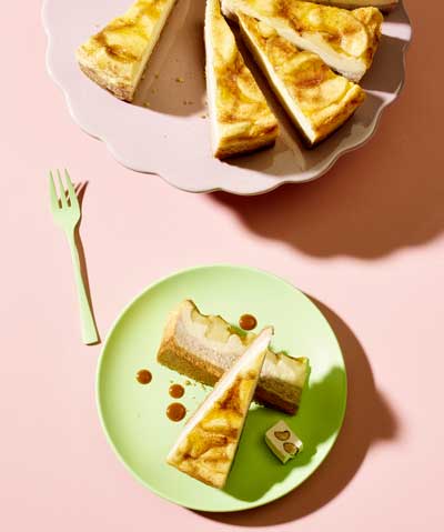 • Cheesecake Topped Apple: Otra combinación imbatible: tarta de manzana y tarta de queso. En este caso, una base de migas crujientes se cubre con un relleno de queso cremoso con un toque de canela y una ligera capa de cheesecake. Todo ello va coronado con rodajas de manzana, azúcar de canela y un glaseado afrutado para darle brillo: