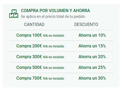 Otra característica diferencial de Envanature es su política de descuentos por volumen, especialmente interesante para los profesionales hosteleros: