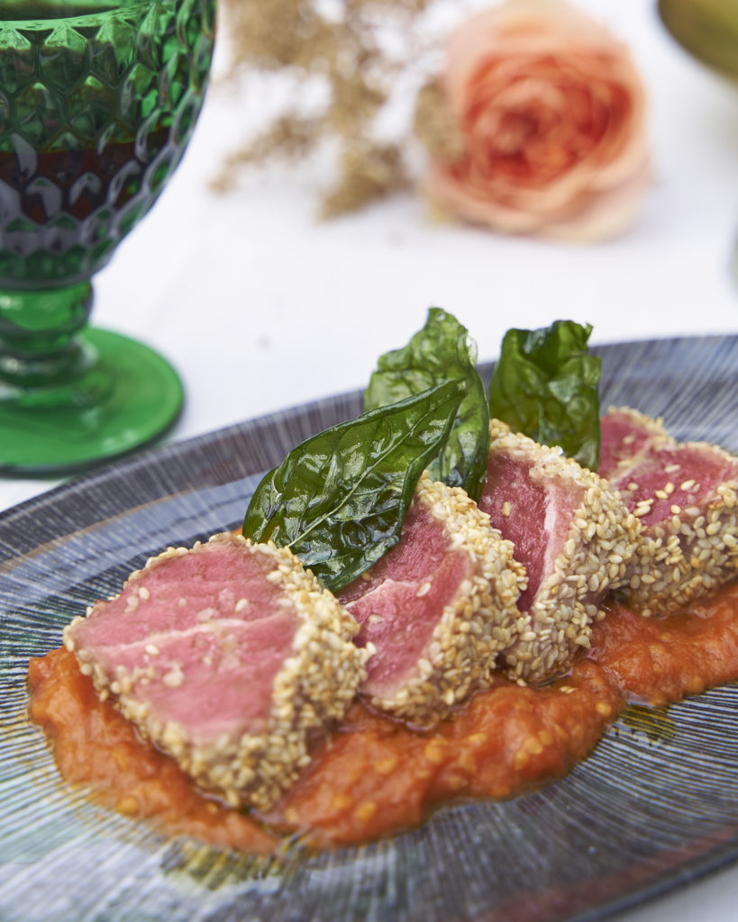 Mariano Fortuny también plasmó en sus piezas el arte japonés y el modelado occidental, técnicas que se reflejan en una carta paralela que integra platos de corte asiático: como la tempura de langostinos o el isiyaki de vaca madurada en tataki, a los que se suman nigiris, rolls y makis.