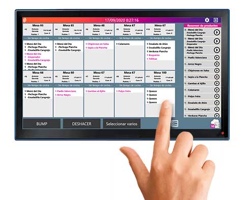 • Permite visualizar todos los pedidos en la pantalla táctil del monitor de cocina.