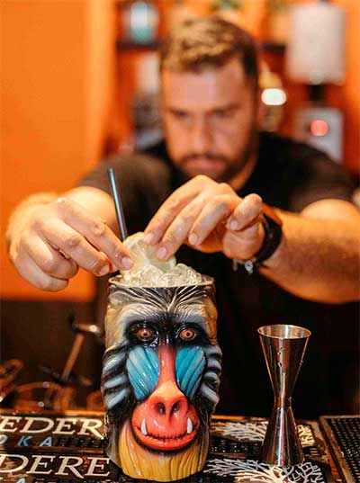 Para ello, cuenta con una carta con más de 25 referencias de cócteles, desde los más cócteles más clásicos como la Piña Colada, el Blue Hawai o el Daikiri Frozen, hasta recetas de elaboración propia que se han convertido en grandes referentes, como el Mandrilus, el Surkan o el ya célebre Boss Raoni.