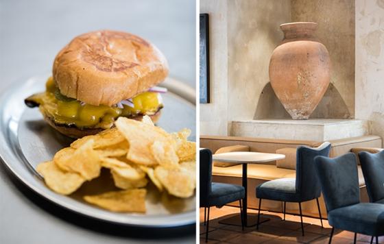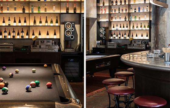 Se han recuperado algunas de las paredes originales del local para darles nueva vida y un toque de modernidad, acompañadas de piezas únicas como una monumental tinaja de barro antigua, cuadros y fotos de amigos artistas, sillas de terciopelo azul, taburetes de inspiración industrial, una clásica mesa de billar y equipos de música de los años 80. Todo ello, en conjunto, logra una atmósfera muy especial.