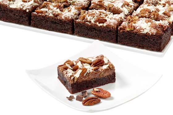 Según la necesidades de cada negocio, las porciones individuales de brownie pueden descongelarse en el microondas y servirse templadas de inmediato. Cortados como mini bocaditos crujientes, también son perfectos para llevar, al igual que ofreciéndolos como polos.