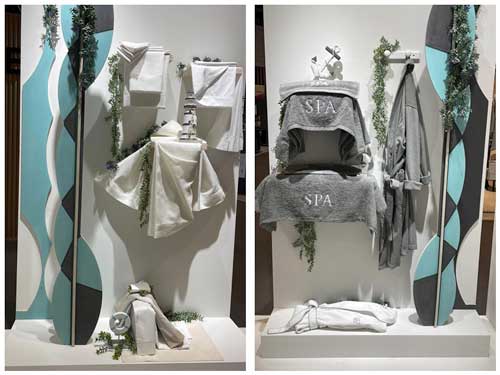 El resto del stand se ha dividido diferentes corner; en la zona de spa ha predominado el color gris en los albornoces, kimonos y toallas.