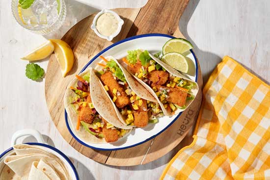 Después de su «pollo« y sus alternativas a las hamburguesas, albóndigas, salchichas y chorizo, todas 100% vegetales, y tras más de un año de investigación y desarrollo, Heura se adentra en el mundo del «pescado» con los Filetes de Merlvza y las Varitas Rebozadas.