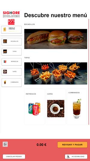 Profesionalhoreca, pantalla de Kiosk Sighore-ICS