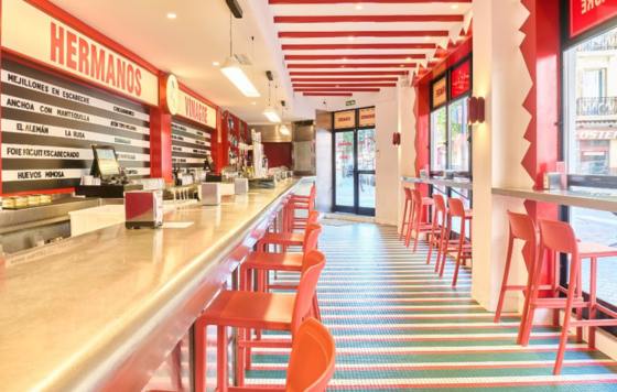 Rojo y rayas en la zona de barra del nuevo Hermanos Vinagre de la calle Cardenal Cisneros, 26