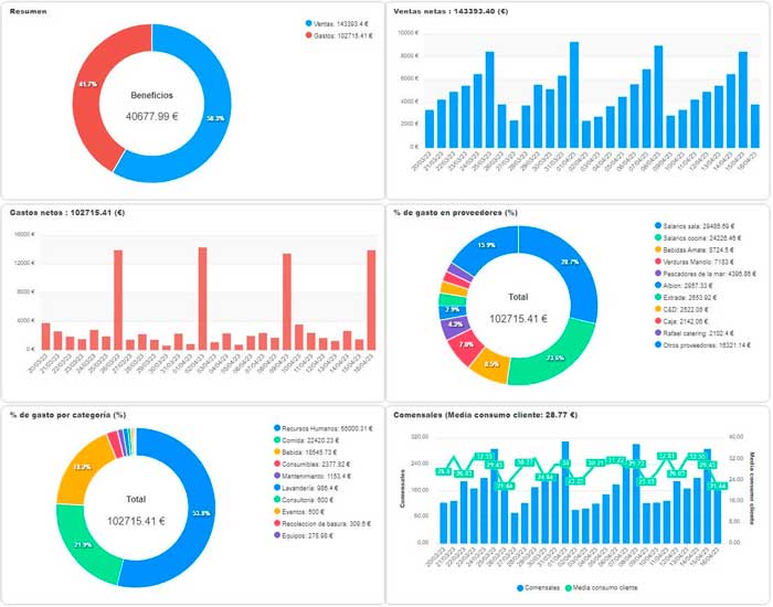 Pendulo ofrece una completa información para la toma de decisiones en el restaurante, como el total de gastos, la evolución de ingresos o el histórico de ventas