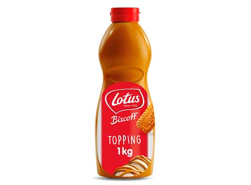 En concreto, el Topping es perfecto para decorar y para dar ese «toque Biscoff» a todos los postres. Se trata de una cobertura para postres hecha con las galletas originales caramelizadas Lotus Biscoff.