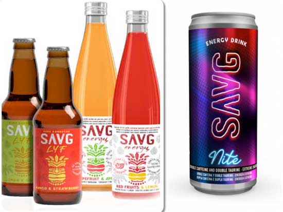 Estos cócteles se suman a la colección de bebidas energéticas SAVG, también con tres referencias: SAVG Energy, con zumos de frutos rojos y limón, con guaraná y stevia, sin alcohol; SAVG Lyf, una de las primeras kombuchas alcohólicas en el mercado europeo, baja en calorías y sin gluten, con saber a limón y jengibre o mango y fresa; y SAVG Nite, bebida energética especialmente diseñada para festivales, ya que contiene doble taurina y doble cafeína.