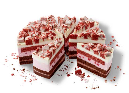 En el Pastel de Fresa Crujiente se rellenan dos esponjosas bases de muffin con una capa crujiente. Por encima va una crema de fresa y una cobertura de chocolate blanco. Como colofón, unos trocitos de muffin Red Velvet le dan un toque muy especial: