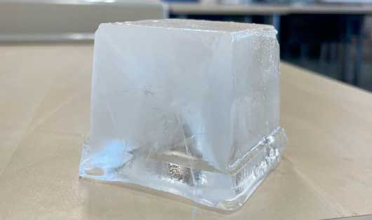 Un cubito de hielo de perfecto acabado, ideal para bebidas de alta calidad