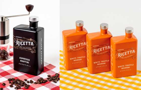 • Ricetta Real Food Cocktails esuna colección de cocktails italianos ready-to-drink compuesta inicialmente por un negroni con trufa blanca y un espresso martini con la esencia del café espresso italiano. Su productor es Liquorificio Italia, empresa situada en la ciudad italiana de Trieste, cuna de la cultura cafetera italiana.