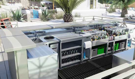 Los módulos son además reconfigurables, lo que permite reorganizarlos o cambiar su ubicación según las necesidades de cada bartender. Además, pueden personalizarse con diferentes paneles frontales o encimeras.