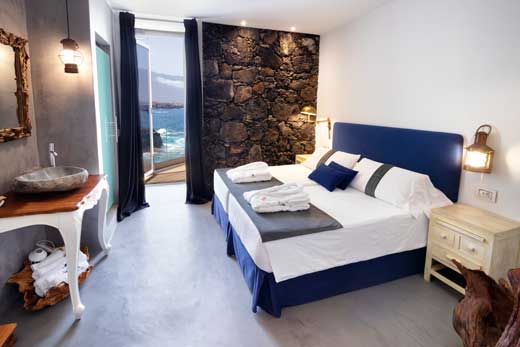 El edificio entero, construido con piedra volcánica, es totalmente sostenible. «Hemos ido reformando el hotel incorporando elementos naturales, como madera, y amenities reciclables y biodegradables», señalan los propietarios. «Evitamos el plástico y el papel. Por ejemplo, para el WC usamos un papel higiénico de bambú totalmente biodegradable, y cada semana viene un camión cisterna a vaciar la fosa séptica para no arrojar absolutamente nada al mar”. Por todo ello, han conseguido certificados que confirmar su apuesta por la sostenibilidad, como el DCA.
