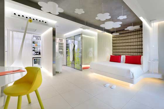 Su estética hippie, que transporta a los visitantes a los años 60 y 70, impregna el espíritu flower power en cada espacio del hotel y en cada una de sus 79 habitaciones, que ofrecen todas las comodidades de un hotel cinco estrellas–