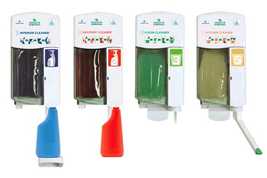 • Green’r Superconcentrates: una gama de productos ultraconcentrados para interiores, aseos, suelos y cocinas que hace que la limpieza diaria sea más rápida, segura y eficiente. Con una sola bolsa es posible llenar hasta 350 botellas de spray, lo que optimiza tanto los costes como los recursos. Es además la más amplia gama de productos con etiqueta ecológica del mercado.