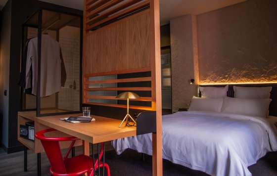 Las habitaciones lucen un look moderno, minimalista y funcional. Se han empleado materiales nobles y una iluminación estudiada para crear un refugio de calma en medio del bullicio urbano. Destacan las transparencias, el uso del color y las texturas.