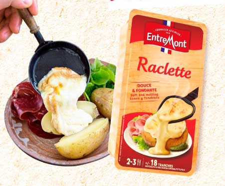 Originario de los Alpes, el queso Raclette de Entremont adquiere su sabor único gracias a una lenta maduración de 8 semanas sobre baldas de pícea. Es perfecto para las recetas de la restauración organizada por su sabor, textura, fundido, operatividad, rentabilidad y su poder para convertir una hamburguesa en una propuesta gourmet con un toque francés.