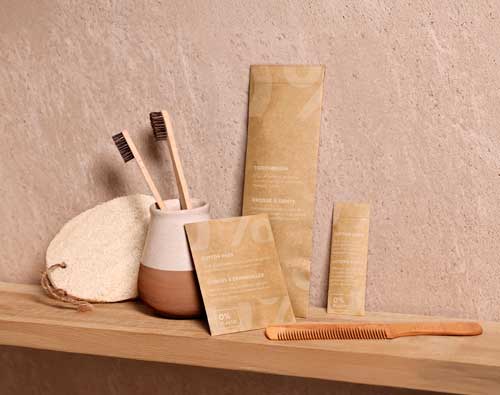 Esta es la única gama de productos de cortesía para hoteles certificada como 0% plástico por SGS, y con ella los hoteles pueden mejorar la experiencia de los huéspedes a la vez que se comprometen con la sostenibilidad.