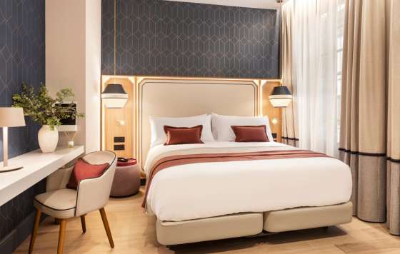 Las habitaciones lucen un diseño cuidado, cálido y minimalista que logran un ambiente acogedor. Además, cuentan con tecnología domótica, como como el sistema de reproducción de música con conectividad Bluetooth y el panel táctil de avisos para el acceso a la habitación.