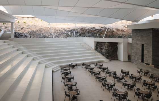 El hotel cuenta además con un centro de convenciones para albergar eventos de diversa tipología. Este espacio multifuncional, con una capacidad máxima de 800 personas, se articula en torno a un anfiteatro excavado en lava volcánica. Las salas polivalentes, por su parte, se caracterizan por su flexibilidad y su equipamiento tecnológico de última generación.
