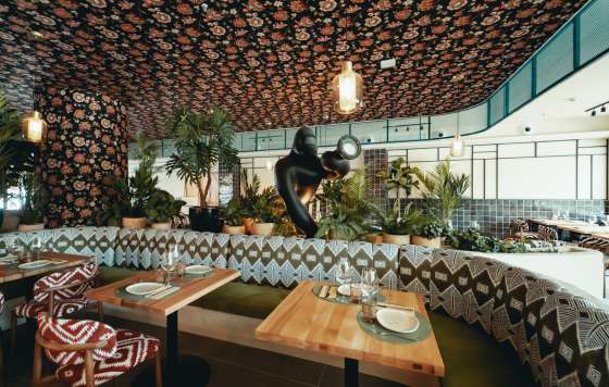 Papúa Valencia cuenta con 800 m2 de superficie y capacidad para 222 comensales, y su interiorismo es obra de Nadia Mateo y Juan Jacobo Muñoz, de Mediterráneas Duque. La decoración de estilo contemporáneo, con estampados tropicales, abundante vegetación y los ya icónicos animales de Papúa, crea un ambiente inmersivo que traslada al comensal a un universo elegantes y sofisticado, fiel a la identidad de la marca.