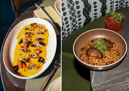La carta, con un marcado acento mediterráneo, gira en torno a tres ejes fundamentales: la huerta, las brasas y los arroces. Atención también a la carta de cócteles, que ha sido diseñada como una prolongación natural de la experiencia gastronómica: sofisticada, sorprendente y sensorial.