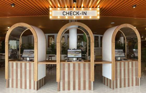 De forma independiente, la entrada del hotel incorpora kioscos auto check-in, que agilizan el proceso de llegada.