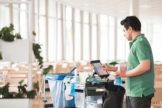 Mediante sensores del Internet de las Cosas (IoT) situados en los dispensadores de aseos y contadores de personas, este sistema notifica al personal de limpieza cuándo necesitan recarga y cuántos usuarios han entrado en esas instalaciones, indicando así cuándo es necesaria su limpieza.