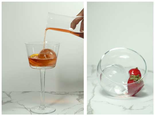 Se trata de unas esferas de hielo compactas diseñadas para enfriar licores, combinados, refrescos y todo tipo de bebidas frías. Gracias a su estructura sin aire (que las hace transparentes), duran y mantienen la temperatura óptima de la bebida por más tiempo, sin diluirla o cambiar su sabor.