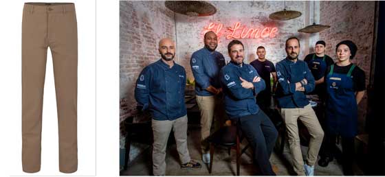 ¿Que se lleva en uniformes para la hostelería? Un buen ejemplo de las nuevas tendencias lo da la marca Velilla, que ha vestido a los equipos de cocina y sala del chef Javi Estévez en sus tres restaurantes madrileños: La Tasquería, La Barra y El Lince.