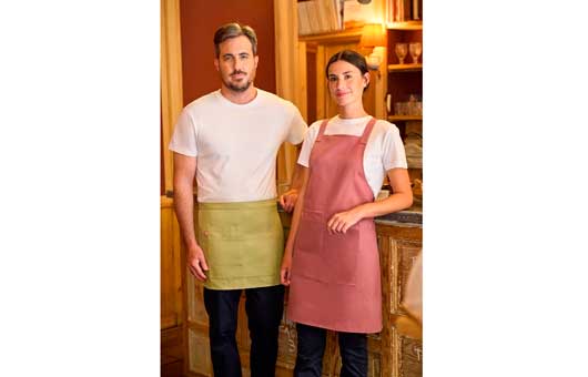 En cuanto a los complementos, los delantales con algodón orgánico, que combinan sostenibilidad, tejidos hidrófugos y diseño ergonómico, son ideales para espacios que cuidan su imagen y la funcionalidad.