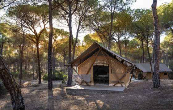 - Huttopia Parque de Doñana: Ubicado en Hinojos, junto al Parque Nacional de Doñana, este destino ofrece una inmersión total en uno de los ecosistemas más ricos de Europa. Se trata del primer camping con sello Huttopia en la región ibérica, rodeado de pinares y marismas, perfecto para los amantes de la biodiversidad, el avistamiento de aves o las rutas a caballo y bicicleta.
