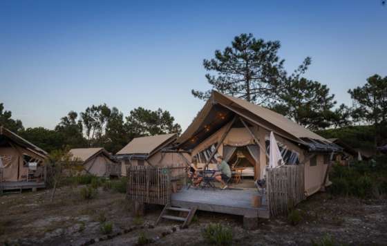 - Huttopia Lagoa de Óbidos: A tan solo una hora de Lisboa, entre Peniche y Nazaré, se extiende entre pinares y dunas, junto a la mayor laguna salada de Portugal. Su acceso directo al agua y sus 7 kilómetros de playa lo convierten en un paraíso para la práctica del kitesurf, paddle surf y actividades náuticas. Con un ambiente relajado y familiar, es ideal para viajeros que buscan una combinación de deporte, descanso y vida al aire libre, en contacto con la cultura local y el ritmo del Atlántico.