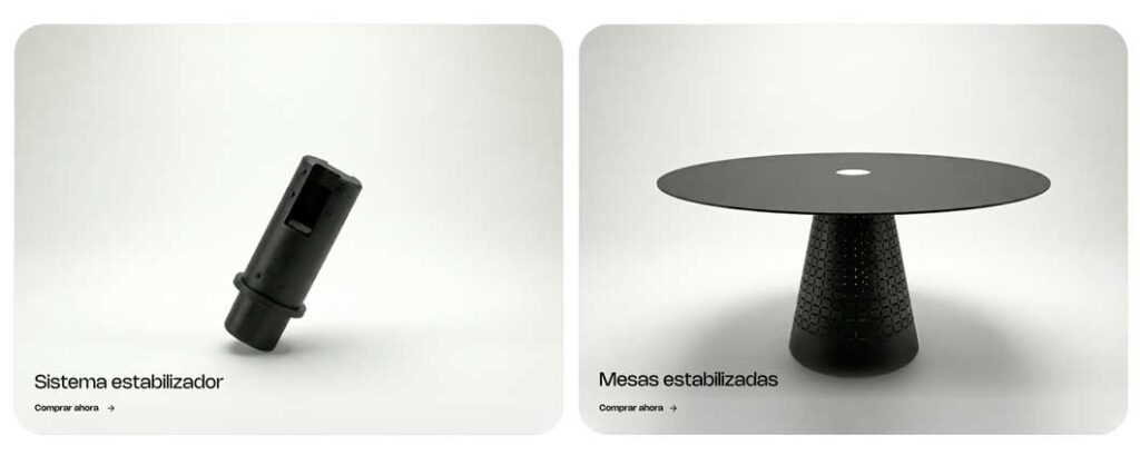 «Nuestras mesas no son como las demás», explican desde esTABLEes. Para dar respuesta a todo tipo de configuraciones, esta firma valenciana ha desarrollado y patentado internacionalmente su sistema estabilizador automático, disponible en versión horizontal y vertical, diseñado tanto para bases planas como para patas verticales y perfectamente integrado en su catálogo.