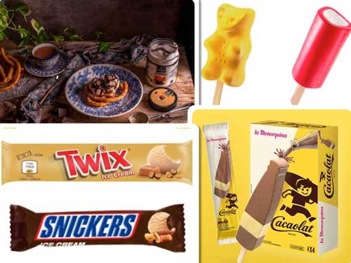 Las populares chocolatinas de Mars se convierten ahora en helado, así como los ositos de Haribo y los batidos Cacaolat. Incluso los españolísimos churros con chocolate tienen ahora su versión helada… Grandes marcas de gran consumo se alían con reputadas firmas heladeras y lanzan referencias…