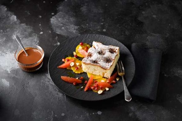 Una jugosa Tarta de Canela y Levadura de Erlenbacher es el punto de partida de esta receta deliciosa de invierno, acompañada de cítricos agridulces y una salsa de turrón. Inspiración para los chefs y todo un ejemplo de la versatilidad que ofrece la pastelería premium…