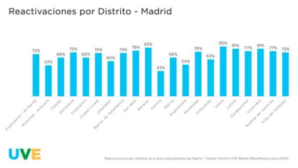 El centro de Madrid y los barrios turísticos de la capital son los que más están sufriendo en la desescalada, con sólo un 43,6% de reactivación en el mes de julio, revela un estudio de la consultora Uve Market #NewReality. Por el contrario Barajas, Usera,…