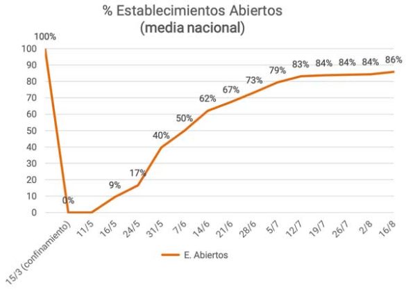 En la semana del 10 al 16 de agosto se mantiene la caída de la actividad de la hostelería y de la distribución que la suministra por encima del 25% por cuarta semana consecutiva, sumando los establecimientos cerrados (14%) y la pérdida de ventas de…