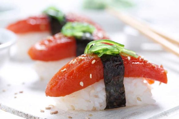 Atún… ¿100% vegetal? Sí, ya es realidad. Lo ha desarrollado la startup madrileña Mimic Seafood, está elaborado a base de tomate y se comercializa en formatos de nigiris, sushi rolls, tartar y poke… Su nombre es Tunato.