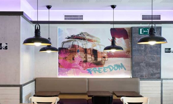 Los restaurantes Taco Bell lucen un look moderno, fresco y muy actual, sin obras, con la gama de revestimientos Element 3D de Grosfillex: un sistema de paneles decorativos de impresión digital, texturizados, ligeros y de instalación rápida.