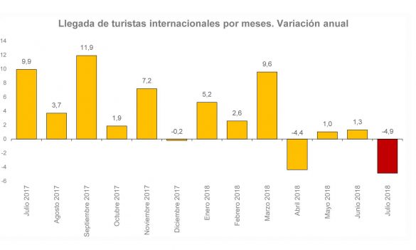 Un 4,9% menos de turistas extranjeros en julio, el mayor descenso en 8 años